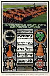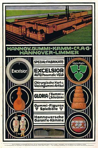 Keywords: 1911-04-20 Illustrirte Zeitung S. 0100 S. 066Hannoversche Gummi-Kamm Co. AG Hannover-Limmer Änne Koken.jpg Illustrirten Zeitung Nummer 3538 hundertsechsundreissigster Band vom 20 April 1911 mit dem Titel Hannover und Grenzgebiete; Vierfarb-Druck auf dem etwas festeren Papier- žRückendeckels mit einer ganzseitig graphisch nach Art eines Posterdruckes durchgestalteten Werbeanzeige der Hannoverschen Gummi-Kamm Co AG Unter der beinahe expressionistisch skizzierten Darstellung der damaligen Fabrikgebäude der Gummiverarbeiterin im Dreieck der Wunstorfer Straße mit den Wasserwegen Stichkanal Hannover-Linden und Leineabstiegskanal findet sich eine Liste der von der Unternehmerin hergestellten Produkte Aufgeführt werden als Zitat Spezial-Fabrikate Excelsior Auto Pneumatic Velo / Chirurgische Hart- und Weichgummi-Artikel / Gloria GummiSchwämme / Gummifiguren Spielbälle / Hannoversche Garantie-Kämme Grafisch abgebildet sind zudem neben dem Logo der Excesior die Schutzmarke mit dem hannoverschen dreiblättrigen Kleeblatt eine Gummi- žFlasche namens žExcelsior Douche Spielzeug-Figuren Puppen sowie ein Kamm der Marke Gloria unter dem sich die Künstlersignatur der Grafikerin Änne Koken findet Am Fuß der Annonce ist in feiner Druckschrift das Impressum der Illustrirten Zeitung wiedergegeben Für die Redaktion verantwortlich Otto Sonne für den Inseratenteil Ernst Meckel beide in Leipzig Herausgabe Druck und Verlag von J J Weber in Leipzig In Österreich-Ungarn für Herausgabe und Schriftleitung verantwortlich Robert Mohr in Wien I- ” Für unverlangte Einsendungen an die Redaktion wird keinerlei Verantwortung übernommen ” Das Blatt hat die Maße circa DIN A3 wurde nach dem Scan elektronisch optisch etwas überarbeitet und an den Seitenrändern beschnitten um unterhalb der Maximalgröße von 100 Megabit je hochgeladener Datei zu bleiben jedoch als digitale Schenkung an alle Menschen in höchstmöglicher Qualität angeboten werden zu können Das gesamte originale Heft wurde am 9 Dezember 2014 der Gottfried Wilhelm Leibniz Bibliothek - Niedersächsische Landesbibliothek Herrn Direktor Georg Ruppelt als Schenkung dargeboten nachdem es zuvor jedoch noch vollständig digitalisiert und - Zug um Zug - vollumfänglich über Commons für alle Menschen verfügbar gemacht werden soll Die Schenkung soll das Original in die richtigen in gute Hände bringen und die gegenseitige Kooperation weiter ausbauen Dank an Stephan Mielke vom hannoverschen Guelphen Kabinett Antiquariat für die Unterstützung in Form eines riesigen Preisnachlasses dank an den Freundeskreis Hannover für die Zurverfügungstellung des DIN A3-Scanners und die stete Unterstützung zum Ausbau von Wikipedia und Dank auch an die vielen ungenannten zum Wohle der Allgemeinheit Mitwirkenden auch die Helferinnen und Helfer in und um das Wikipedia-Büro Hannover Scan vom Original Bernd Schwabe in Hannover 1911-04-20 Änne Koken; Illustrirte Zeitung August Madsack PD-old Hannoversche Gummiwerke Excelsior Documents by Gottfried Wilhelm Leibniz Bibliothek -Niedersächsische Landesbibliothek Art Nouveau posters Wikipedia-Büro Hannover 2015 1911 in Hannover Art Nouveau in Hannover August Madsack Hannoverscher Anzeiger Illustrierte Zeitung 3538 Änne Koken Advertising posters in Hannover |