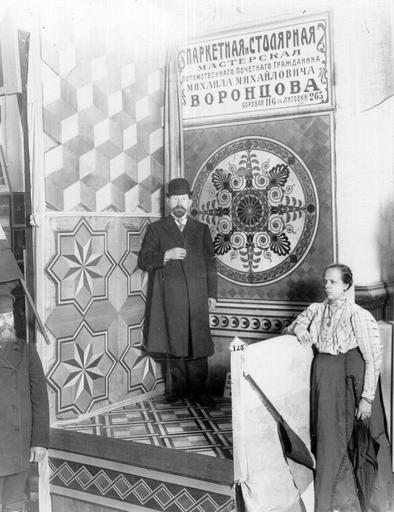 View Original:1911. СПб 13. Изделия паркетной и столярной мастерской М.М.Воронцова - экспонаты выставки .jpg (1200x1560)