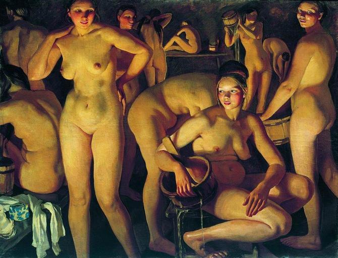 | Keywords: 1913. Баня.jpg Artwork Creator Zinaida Serebriakova 1913 Oil on canvas size cm 174 135 Russian Museum object history exhibition history credit line accession number http //gallerix ru/storeroom/2054753045/N/1252598310/ PD-RusEmpire Banya in art Bathing females in art Bathhouses in art 1913 paintings from Russia 20th-century paintings in the Russian Museum Nude females by Zinaida Serebriakova 20th-century paintings of bathing females Files uploaded by Andrew Butko from various sources 20th century Group paintings of nude women |