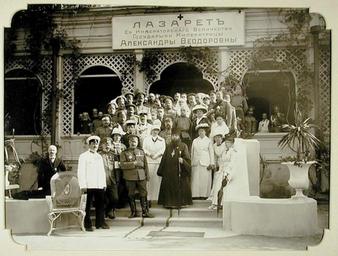 View Original:1914-1915. 12. Группа участников открытия лазарета имени императрицы Александры Фёдоровны ( на Хаджибейском лимане).jpg (500x379)