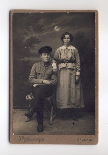 | Keywords: 1914-1915 brother and sister (Proskovja and NIkolaj Semecevi).jpg Description Two townspeople brother and sister - Proskovja and Nikolaj Semecevi П осковья и иколай Семечевы Date around 1914-1915 Photographer O Anshelevic О Аншелiевичъ Place Viazma Russian Impery Вязьма Россиская импе ия Backside PD-old People of the Russian Empire Fashion in 1914 Fashion in 1915 Siblings | ||||