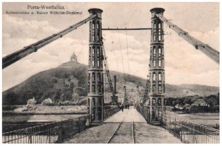 Keywords: 1914-Porta-Westfalica-Kettenbrücke.jpg 52 2449218759874 8 920812606811523 region DE-NW 27px Alte Kettenbrücke an der Porta Westfalica Im Hintergrund das Kaiser-Wilhelm-Denkmal 29px Old iron chain bridge at the Porta Westfalica In the background the Kaiser-Wilhelm-Denkmal Germany 27px Ansichtskarte 29px Picture postcard 1914 Unknown photographer<br />Uploaded by User R Engelhardt/Template filenumber User R Engelhardt/Template permission PD-old ImageNote 1 141 121 75 52 551 363 2 Kaiser-Wilhelm-Denkmal ImageNoteEnd 1 Files uploaded by R Engelhardt Suspension road bridges in Germany Porta Westfalica Kaiser-Wilhelm-Denkmal an der Porta Westfalica Bridges over the Weser in Porta Westfalica 1914 Kettenbrücke 1914 in Porta Westfalica 1914 postcards Postcards of Porta Westfalica Black and white photographs of Germany in the 1910s Bridge railings in Germany Chain bridges Railway bridges in North Rhine-Westphalia |