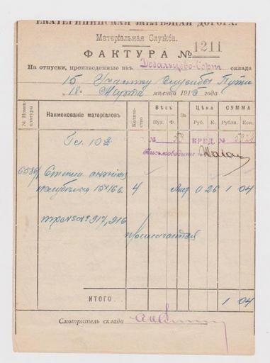 Keywords: 1915. Фактура Екатерининской железной дороги.jpg Факту а Екате ининской железной до оги Станция Дебальцево-со ти овочная http //forum gp dn ua/viewtopic php f 43 t 870 1915 Екате ининская железная до ога PD-RusEmpire 1915 in Debaltsevo Economy of Debaltseve Documents of Donetsk Oblast