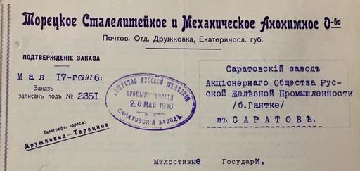 Keywords: 1916. Письмо Торецкого Общества Саратовскому заводу 2.jpg Письмо от То ецкого Сталелитейного и еханического Анонимного Общества Д ужковка Са атовскому заводу Акционе ного Общества Русской Железной П омышленности бывший Гантке 1916 г 1916 https //www facebook com/groups/klubkraeznavez/permalink/606761076163502/ То ецкое Сталелитейное и еханическое Анонимного Общество PD-RusEmpire 1916 in Druzhkivka Economy of Druzhkivka |