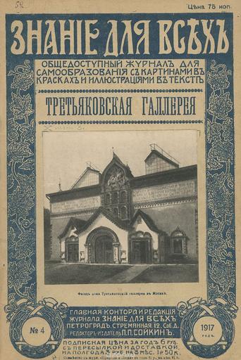| Keywords: Знание для всех. 1917. №04. Третьяковская галерея. — Обложка.jpg Знание для всех 1917 04 Т етьяковская гале ея Обложка http //www baoo ru/product/25901923 Ред -изд П П Сойкин PD-RusEmpire Znaniye dlya vsekh Magazines of Russia 1917 Title pages uploaded by Steven Pavlov from various sources |