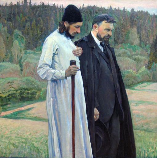 | Keywords: 1917 Nesterow Philosophen anagoria.JPG Artwork Creator Mikhail Nesterov langSwitch Philosophers S N Bulgakov and P A Florensky Философы С Булгаков П А Фло енский Philosophen S N Bulgakow und P A Florenskij 1917 oil canvas cm 123 125 institution Tretyakov Gallery 39 accession number langSwitch http //www tretyakovgallery ru/ru/collection/_show/image/_id/300 Т етьяковская гале ея http //www tretyakovgallery ru/en/collection/_show/image/_id/300 Tretyakov Gallery object history credit line exhibition history anagoria own PD-old-auto-1923 1942 Portraits by Mikhail Nesterov Florensky 20th-century paintings in the Tretyakov Gallery Pavel Florensky Sergei Bulgakov 1917 paintings from Russia 1910s portrait paintings 1900s portraits of Russia male |