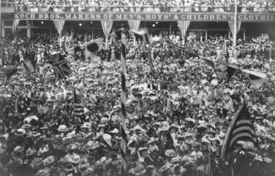 | Keywords: 1919 - Victory Day Crowd in Center Square.jpg en Because of the sudden end to World War I on 11 November 1918 only an impromptu celebration was held on Armistice Day Victory Day was planned for June 1919 after the return of many veterans from the Allentown area from Europe This photo shows the celebration of the people of Allentown and the recently discharged veterans in Center Square 1910 Ann Bartholomew Author Carol M Front Author 2002 Allentown Images of America Arcadia Publishing April 8 2002 ISBN-10 0738509965 Undetermined photographers other versions Custom license marker 2015 10 24 PD-Old 1919 Victory Day Parade Uploaded with UploadWizard |