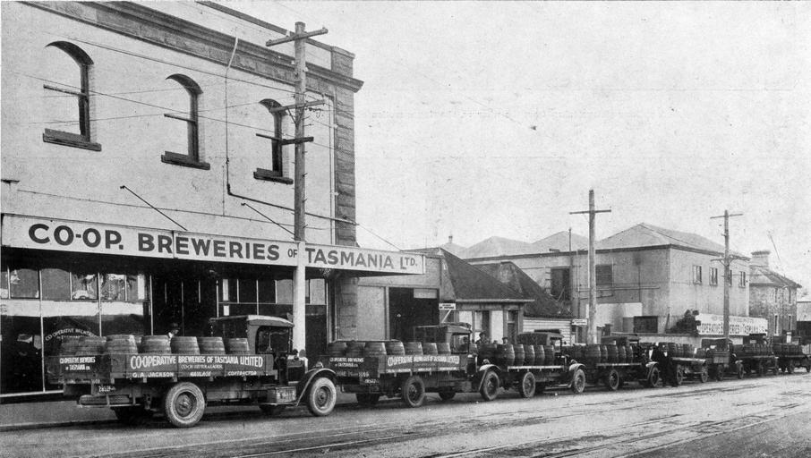 Keywords: tasmania blackandwhite monochrome outdoor architecture building train locomotive vehicle railroad black and white Co-operative Breweries, corner of Elizabeth and Warwick Streets. Co-operative Breweries, corner of Elizabeth and Warwick Streets.
