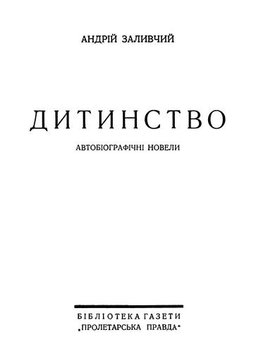 Keywords: Дитинство-1929.jpg Титульний лист збі ки новел Анд ія Заливчого «Дитинство» 1929 Заливчий А Дитинство Автобіог афічні новели Київ Бібліотека газети «П олета ська п авда» 1929 46 с scan by AMY <span class signature-talk ></span> PD-Art Andrii Zalyvchyi |
