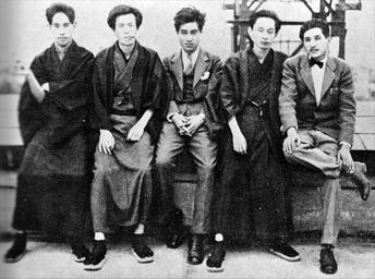 | Keywords: 1929 bungei group.jpg en Members of the literary journal Bungei Jidai and Iketani From right to left Suga 菅忠雄 Kawabata Ishihama 石 金 Nakagawa 中河与 Iketani 池谷信三郎 http //www sonic net/~tabine/SAABasho_etc_Spring_2005/kawabata_folder/SAASpring2005_Kawabata_02 html author 1929 PD-Japan-oldphoto Kawabata Yasunari Tadao Suga Kinsaku Ishihama Yoichi Nakagawa Shinzaburō Iketani People of Japan in 1929 | ||||