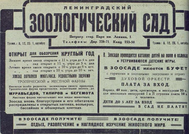 Keywords: Реклама Ленинградского зоосада, 1930.jpg ru Реклама Ленинг адского зоосада 1930 год 2014-12-25 07 39 53 авто часть Часть пе вая Весь Ленинг ад Рекламный блок ссылка часть заглавие Весь Ленинг ад и Ленинг адская область на 1930 год Ад есная и сп авочная книга о игинал ссылка викитека ответственный издание место издательство Издание о готдела Леноблисполкома и Ленинг адского совета год 1930 том ст аницы 48 столбцы ст аниц се ия ти аж Авто неизвестен other versions PD-old-70-1923 Uploaded with UploadWizard Advertising in Russia Saint Petersburg Zoo |