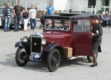 Keywords: 1931 Singer Junior Saloon 8 HP, Owner Kjartan Meyer who wears period attire and picks up lady companion dressed in style as well IMG 9333.JPG nn Tatt på Veteranbiltreff på Utstein 1 August 2009 Kjartan eide bilen da Han har tidstypiske klær på og tar med seg følge i passende kledebon en Captured at a Veteran-Car meeting on August 1 2009 in Utstein Norway Kjartan was the owner at the time He wears period attire and picks up lady companion dressed in style as well de Aufgenommen beim Veteranauto-Treffen am 1 August 2009 in Utstein Norwegen Kjartan war der Besitzer zu der Zeit Er trägt zeitgemäße Kleidung und nimmt eine Begleitung in ebensolche Kleidung auf 2009-08-02 own Stein Sjølie cc-zero Uploaded with UploadWizard Singer 8 Junior |