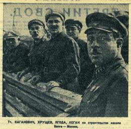 MAKE A MEME View Large Image 19350601-khruchev yagoda kaganovich kogan at construction site moskva-volga channel.jpg de Nikita Chruschtschow Genrich Jagoda Lasar Kaganowitsch Lasar Kogan auf der Baustelle des Moskwa-Wolga-Kanals ru Газета П авда 1935-01-06 ...