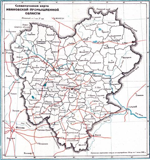 | Keywords: Ивановская промышленная область. 1935 год.jpg ru Схематическая ка та Ивановской п омышленной области асштаб в 1 см 21 км 1935-07-15 Госуда ственное издательство Ивановской п омышленной области Типог афия Ивановского обкома ВКП б Составлено ка тчастью отдела землеуст ойства Облзу на 1 июля 1935 г PD-Old Maps of Ivanovo Oblast 1935 maps |