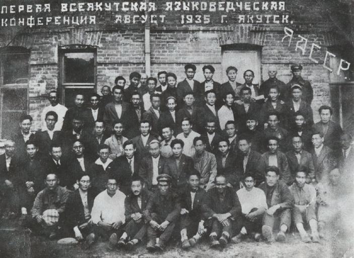 | Keywords: Саха конференция 1935.jpg ru Пе вая всеякутская языковедческая конфе енция 1935 Во вто ом яду Г В Ксенофонтов - 4-й слева; Платон Ойунский - 5-й слева 1935 http //www gvksenofontov com/ page-18/c1mzg author other versions Custom license marker 2016 01 16 PD-old Platon Oyunsky Gavriil Ksenofontov History of the Sakha Republic |