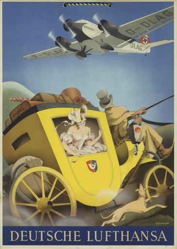 | Keywords: 1936 circa Max Ullmann Plakat für die Deutsche Lufthansa, Junkers Ju 52 über einer Postkutsche.jpg 1936 entstandenes Vielfarb-Plakat Druckvermerk Werbung 20d/I 37 BTL für die Deutsche Lufthansa nach einem Entwurf von Max Ullmann Ein dreimotoriges Flugzeug Typ Junkers Ju 52 Spitzname žTante Ju hier zur Zeit des Nationalsozialismis mit Hakenkreuz fliegt über einer altmodischen Postkutsche in voller Fahrt aus der sich eine offenherzige Dame bewundernd herausbeugt den Blick erfreut nach oben gerichtet http //www plakatkontor de/ivpda-poster-show/ullmann-m-deutsche-lufthansa---junkers-ju-52 html 1936 Max Ullmann PD-old Junkers Ju 52 1936 posters 1936 works in Germany Max Ullmann Verleger 1936 in aviation in Germany Lufthansa Stagecoaches in art Swastikas in advertising Aviation advertising posters |
