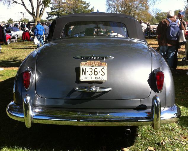 MAKE A MEME View Large Image Hudson convertible Hershey 2012 b.jpg en 1948 Hudson Commodore convertible Rear end view One of the first post World War II cars to the marketplace the 1948 model year inaugurated Hudson's trademarked Monobuilt construction or step-down ...