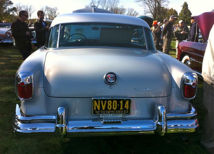 | Keywords: 1953 Nash Ambassador hardtop Hershey 2012 b.jpg en 1953 Nash Ambassador two-door hardtop no B pillar featuring a 120-horsepower Super Jetfire straight-six engine and HydraMatic automatic transmission Picture taken on the show field of the Antique Automobile Club of America AACA 2012 Hershey meet that is held every October in Pennsylvania 2012-10-13 13 59 39 own CZmarlin ” Christopher Ziemnowicz releases all rights but a photo credit would be appreciated if this image is used anywhere other than Wikipedia Please leave a note at Wikipedia http //en wikipedia org/w/index php title User_talk CZmarlin action edit section new here Thank you thumb left Interior - driver's cockpit thumb center Interior front seat dashboard thumb left Engine bay with the Jetfire I6 thumb center Front view - head on thumb left Side view of this car cc-zero 1953 Nash automobiles Nash Ambassador Uploaded with UploadWizard Rear views of automobiles |