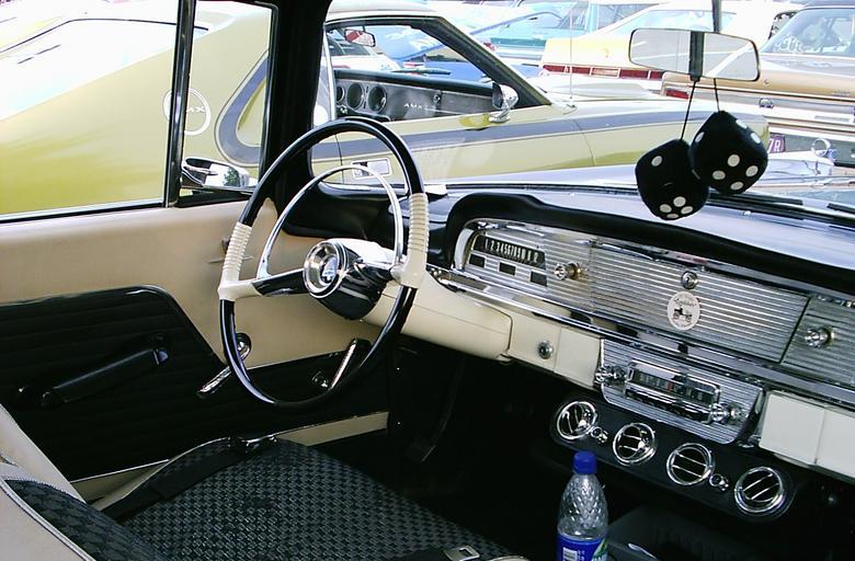 | Keywords: 1958 Ambassador 4-d hardtop interior.jpg en American Motors Corporation AMC vehicle - 1958 Ambassador by Rambler - 4-door hardtop body style - interior view of dashboard steering wheel and instrument panel Picture taken at the AMCRC show in Gaithersburg Maryland During a cruise to the Lake Forest Mall own 2006-06-30 CZmarlin ” Christopher Ziemnowicz releases all rights but a photo credit would be appreciated if this image is used anywhere other than Wikipedia Please leave a note at Wikipedia http //en wikipedia org/w/index php title User_talk CZmarlin action edit section new here Thank you cc-by-sa-2 5 thumb left Rear and right side of this car thumb center Front view of this car 1958 automobiles AMC Ambassador AMC interiors Automobile dashboards Fuzzy dice Taken with Samsung 201 Black dice |