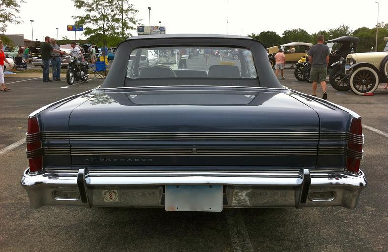 | Keywords: 1966 AMC Ambassador 990 4-sp convertible AACA Iowa d.jpg 42 028833333333 -91 651833333333 en 1966 AMC Ambassador 990 convertible finished in blue - rear view A full-sized automobile built by American Motors Corporation AMC in Kenosha Wisconsin This is an all original one-owner car that was special ordered by them Among the features on this car are its 327 cu in 5 4 L 4--barrel carb V8 engine with a 4-speed manual transmission center console mounted shifter with black bucket seats as well as an AM/FM radio and an aftermarket 8-track stereo player Picture taken at the 2012 Antique Automobile Club of America AACA Central Spring meet in Cedar Rapids Iowa USA 2012-06-23 14 31 37 own CZmarlin ” Christopher Ziemnowicz releases all rights but a photo credit would be appreciated if this image is used anywhere other than Wikipedia Please leave a note at Wikipedia http //en wikipedia org/w/index php title User_talk CZmarlin action edit section new here Thank you thumb left Left side front view thumb center Right rear view thumb left Front right side view thumb center Right side view thumb left Front view thumb center Interior view thumb left Driver's compartment thumb center Interior view thumb left Left side of engine thumb center Right side of engine thumb left Another front view thumb center Headlamp detail thumb left Model name and wheel detail thumb center Another right front view thumb left upright Tail lamp detail cc-zero AMC Ambassador Uploaded with UploadWizard Rear views of automobiles |