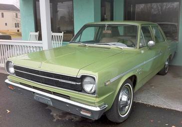 Keywords: 1968 Rambler American 440 4-door sedan green VA-fl.jpg en 1968 Rambler American by American Motors Corporation - AMC front left side view of this 440 series 4-door sedan finished in Laurel Green Iridescent paint code - P46A Photographed near Madison Virginia classic car dealer on US-29 2012-12-09 12 54 11 own CZmarlin ” Christopher Ziemnowicz releases all rights but a photo credit would be appreciated if this image is used anywhere other than Wikipedia Please leave a note at Wikipedia http //en wikipedia org/w/index php title User_talk CZmarlin action edit section new here Thank you thumb left Head on view thumb center Front right side view thumb left Detail of vent window and outside rear view mirror thumb center Detail of emblems on front fender thumb left Steering wheel and dashboard thumb center Driver's cockpit and dashboard thumb left Interior detail thumb center Detail of rear window thumb left Front seats thumb upright center Rear seats thumb left Detail of model name and C pillar 38 393833333333 -78 238666666667 cc-zero Rambler American Uploaded with UploadWizard Green Rambler sedans Automobiles facing left |