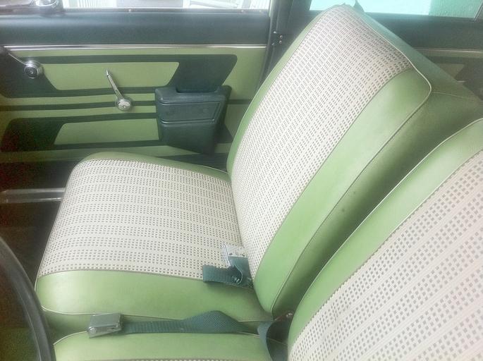 Keywords: 1968 Rambler American 440 4-door sedan green VA-ia.jpg en The standard individually adjustable and reclining front seats in a 1968 Rambler American by American Motors Corporation - AMC 440 series 4-door sedan finished in Laurel Green Iridescent paint code - P46A and matching green interior Photographed near Madison Virginia classic car dealer on US-29 2012-12-09 12 58 11 own CZmarlin ” Christopher Ziemnowicz releases all rights but a photo credit would be appreciated if this image is used anywhere other than Wikipedia Please leave a note at Wikipedia http //en wikipedia org/w/index php title User_talk CZmarlin action edit section new here Thank you thumb left Front left side thumb center Front right side thumb left Detail of vent window and outside rear view mirror thumb center Detail of emblems on front fender and full wheel cover thumb left Head on view thumb center Steering wheel and dashboard thumb left Interior view of driver's area thumb center Detail of rear window thumb left Detail of automatic transmission column shifter thumb upright center Rear seats thumb left Detail of model name and C pillar 38 393833333333 -78 238666666667 cc-zero Rambler American AMC interiors Uploaded with UploadWizard Automobile seats |