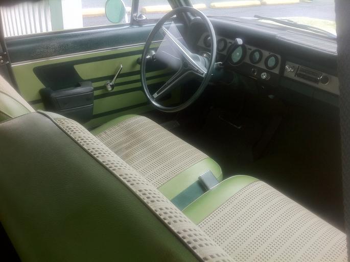 Keywords: 1968 Rambler American 440 4-door sedan green VA-if.jpg en Interior view of driver's area in 1968 Rambler American by American Motors Corporation - AMC 440 series 4-door sedan finished in Laurel Green Iridescent paint code - P46A with matching green interior Photographed near Madison Virginia classic car dealer on US-29 2012-12-09 12 54 55 own CZmarlin ” Christopher Ziemnowicz releases all rights but a photo credit would be appreciated if this image is used anywhere other than Wikipedia Please leave a note at Wikipedia http //en wikipedia org/w/index php title User_talk CZmarlin action edit section new here Thank you thumb left Front left side thumb center Front right side thumb left Detail of vent window and outside rear view mirror thumb center Detail of emblems on front fender and full wheel cover thumb left Head on view thumb center Steering wheel and dashboard thumb left Interior detail thumb center Detail of rear window thumb left Front seats thumb upright center Rear seats thumb left Detail of model name and C pillar 38 393833333333 -78 238666666667 cc-zero Rambler American AMC interiors Uploaded with UploadWizard Automobile cockpits |