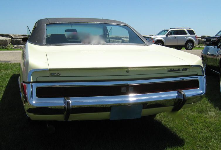 | Keywords: 1970 AMC Ambassador SST hardtop yellow-black K-r.jpg en 1970 AMC American Motors Corporation Ambassador SST two-door hardtop no B pillar finished in Hialeah Yellow paint code P58 Rear view showing bumper mounted full-width rear lights - photograph taken in Kenosha Wisconsin This car features AMC's 360 cubic inch 5 9 L L V8 engine as well as the factory optional black vinyl roof cover 2011-07-30 own CZmarlin ” Christopher Ziemnowicz a photo credit would be appreciated if this image is used anywhere other than Wikipedia Please leave a note at Wikipedia http //en wikipedia org/w/index php title User_talk CZmarlin action edit section new here Thank you thumb left Head on front view thumb center Rear right side view thumb left Interior and dashboard thumb center Detail of tail lamps and model identification on trunk lid thumb left Standard full wheel covers and 360 engine emblem thumb center upright Detail of headlamps cc-zero AMC Ambassador Rear views of automobiles |