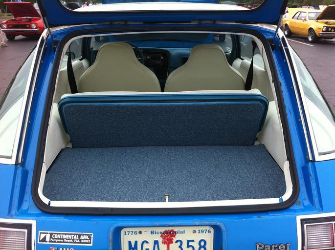 | Keywords: 1976 AMC Pacer DL coupe blue-white 2014-AMO-NC-10.jpg en Detail of the open hatchback with a view of the cargo area with the rear seat upright in a 1976 AMC Pacer coupe an innovative compact-sized car built by American Motors Corporation This is an unmolested factory original D/L model finished in blue with the optional white vinyl roof and the standard D/L interior in matching blue and white with the standard front bench seat Photographed at the 2014 American Motors Owners AMO convention that was held in North Charleston North Carolina USA 2014-08-02 10 06 43 own CZmarlin ” Christopher Ziemnowicz releases all rights but a photo credit would be appreciated if this image is used anywhere other than Wikipedia Please leave a note at Wikipedia http //en wikipedia org/w/index php title User_talk CZmarlin action edit section new here Thank you thumb left thumb center thumb left thumb center thumb left thumb center thumb left thumb center thumb left thumb center thumb left thumb center thumb left thumb center thumb left thumb center thumb left 32 871833333333 -80 0085 cc-zero AMC Pacer Uploaded with UploadWizard AMC interiors AMO 2014 convention |