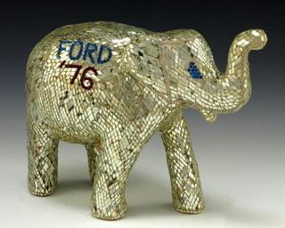 Keywords: 1976 campaign figurine.JPG en Elephant sculpture covered entirely with tiny diamond-shaped mirror plates Ford ˜76 and Michigan GOP are spelled out in blue and red plastic beads on the sides 2012-07-25 Gerald R Ford Presidential Museum n/a Accession Number 1988 368 Dimensions 8 x 4 75 x 11 Gerald R Ford Presidential Library and Museum-cooperation PD-USGov Uploaded with UploadWizard 1976 Campaign materials at the Gerald R Ford Presidential Museum Gerald Ford presidential campaign 1976 Sculptures of elephants 1976 in Michigan |