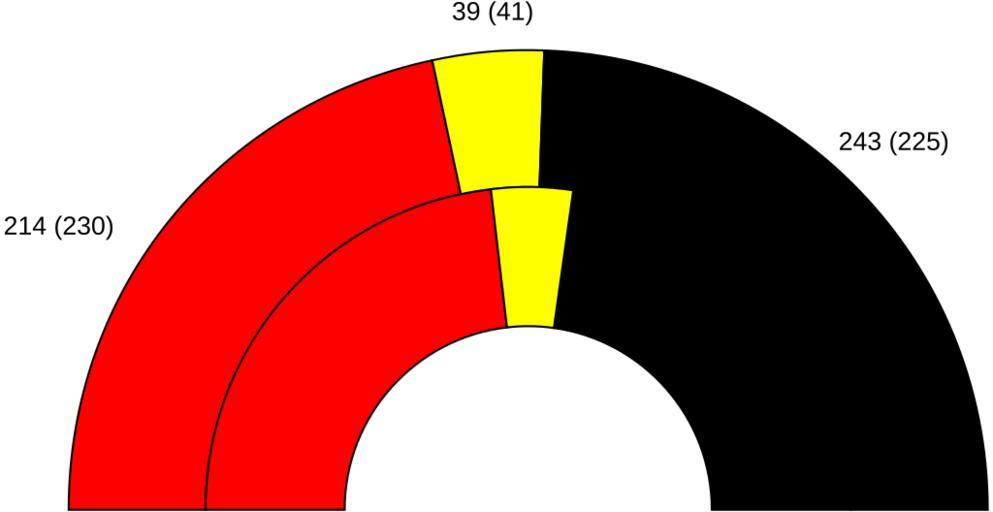 | Keywords: 1976 federal german result.svg German election results seat chart SDP in red FDP in yellow CDU/CSU in black From English Wikipedia; en User Willhsmit 2007-03-19 Traced by User Stannered Other fields + Diagrams Bundestag elections Election apportionment diagrams of German Bundestag |