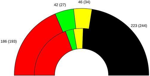 | Keywords: 1987 federal german result.svg German election results seat chart SDP in red Green in green FDP in yellow CDU/CSU in black From English Wikipedia; en User Willhsmit 2007-03-19 Traced by User Stannered Other fields + Diagrams Bundestag elections Election apportionment diagrams of German Bundestag |