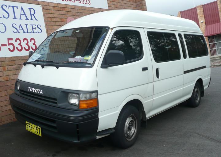 | Keywords: 1989-1994 Toyota Hiace (RZH125R) Commuter van 01.jpg 1989 “1994 Toyota Hiace RZH125R Commuter van photographed in Kirrawee New South Wales Australia 2010-04-03 Own OSX Released into the public domain OSX Toyota HiAce H100 White vans Photographs by OSX |
