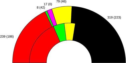 | Keywords: 1990 federal german result.svg German election results seat chart SDP in red Green in green PDS in purple FDP in yellow CDU/CSU in black From English Wikipedia; en User Willhsmit 2007-03-19 Traced by User Stannered Other fields + Diagrams Bundestag elections Election apportionment diagrams of German Bundestag |