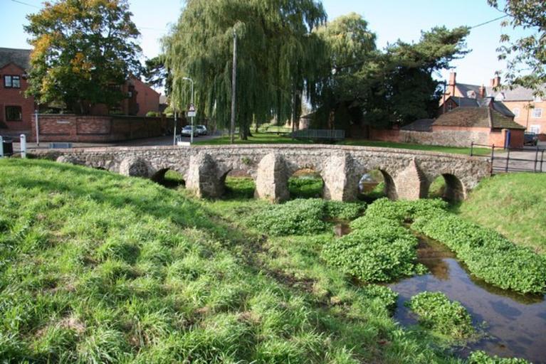 Keywords: 52 43N 1 02W Packhorse bridge over Rearsby Brook, Rearsby, Leicestershire. Attribution: Richard Croft