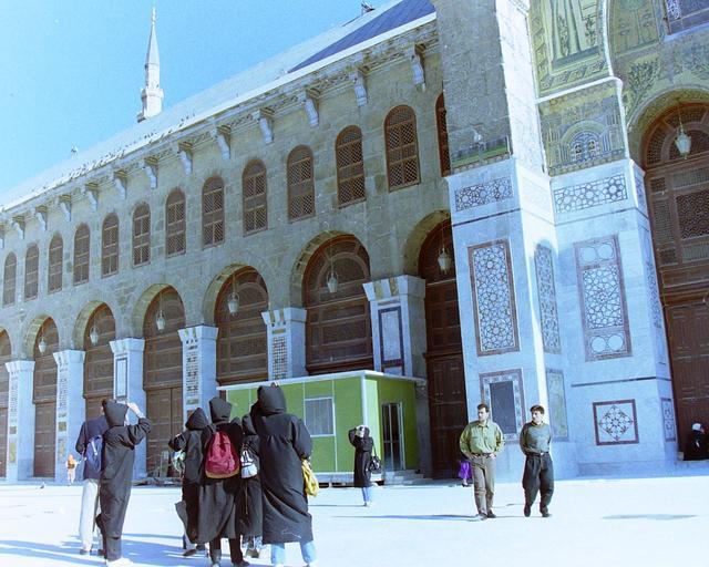 Keywords: 1993 Damascus. Female tourists in Umayyad Mosque. Spielvogel.jpg Umayyad Mosque in Damascus Female tourists have to wear black burqa-like clothes when entering mosques in Syria which they receive at an entrance reserved for women Even if this garment cloaked the entire body they are easily identified as western women by their behavior and posture 1993 own Spielvogel here All images can be used free of charge ici hier Alle Bilder können kostenfrei verwendet werden ---- left 100px I have published this image as author Spielvogel under the http //creativecommons org/publicdomain/zero/1 0/deed en CC0 1 0 in Wikipedia This means you can copy modify distribute and perform the work even for commercial purposes all without asking permission Anyhow it would be decent if as author Wikipedia or wikimedia commons is mentioned ---- left 100px 我以Spielvogel为名 并遵循 http //creativecommons org/publicdomain/zero/1 0/deed zh CC0 1 0 用 协议 维基百科中发布了这 图像 这意味 ---- left border 100px J'ai créé cette œuvre et la publiée sous la licence http //creativecommons org/publicdomain/zero/1 0/deed fr CC0-1 0 universal Vous pouvez copier modifier distribuer et représenter l œuvre même à des fins commerciales sans avoir besoin de demander l autorisation Néanmoins c'était convenable si comme auteur la wikipédia ou wikimedia commons est appelée ---- left 100px Das Foto habe ich als Urheber unter der http //creativecommons org/publicdomain/zero/1 0/deed de CC0-1 0 veröffentlicht Damit ist das Werk in die Gemeinfreiheit - auch genannt Public Domain - entlassen indem ich weltweit auf alle urheberrechtlichen und verwandten Schutzrechte verzichtet habe soweit das gesetzlich möglich ist Sie dürfen das Werk kopieren verändern verbreiten und aufführen sogar zu kommerziellen Zwecken ohne um weitere Erlaubnis bitten zu müssen Gleichwohl wäre es anständig wenn als Urheber Wikipedia oder Wikimedia Commons genannt würde cc-zero Uploaded with UploadWizard Umayyad Mosque Men of Syria Men facing left and looking left Men looking left Walking men Tourists in Syria Women looking up Standing women Islamic female dress Black clothing female 1993 in Syria 1993 in Damascus 1993 photographs Images by Spielvogel |