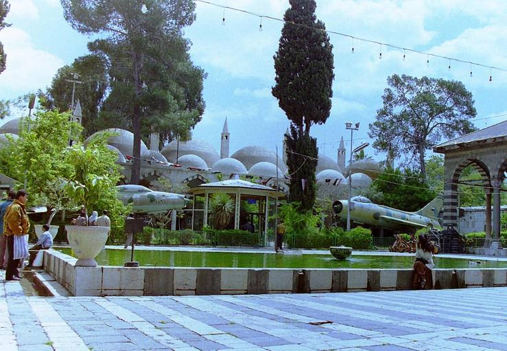 Keywords: 1993 Damascus. Takiyya as-Süleimaniyya mosque complex with military aircrafts. Spielvogel.jpg Takiyya as-Süleimaniyya Mosque in Damascus Syria The aircraft in the garden belong to a military museum located in the complex 1993 own Spielvogel here All images can be used free of charge ici hier Alle Bilder können kostenfrei verwendet werden ---- left 100px I have published this image as author Spielvogel under the http //creativecommons org/publicdomain/zero/1 0/deed en CC0 1 0 in Wikipedia This means you can copy modify distribute and perform the work even for commercial purposes all without asking permission Anyhow it would be decent if as author Wikipedia or wikimedia commons is mentioned ---- left 100px 我以Spielvogel为名 并遵循 http //creativecommons org/publicdomain/zero/1 0/deed zh CC0 1 0 用 协议 维基百科中发布了这 图像 这意味 ---- left border 100px J'ai créé cette œuvre et la publiée sous la licence http //creativecommons org/publicdomain/zero/1 0/deed fr CC0-1 0 universal Vous pouvez copier modifier distribuer et représenter l œuvre même à des fins commerciales sans avoir besoin de demander l autorisation Néanmoins c'était convenable si comme auteur la wikipédia ou wikimedia commons est appelée ---- left 100px Das Foto habe ich als Urheber unter der http //creativecommons org/publicdomain/zero/1 0/deed de CC0-1 0 veröffentlicht Damit ist das Werk in die Gemeinfreiheit - auch genannt Public Domain - entlassen indem ich weltweit auf alle urheberrechtlichen und verwandten Schutzrechte verzichtet habe soweit das gesetzlich möglich ist Sie dürfen das Werk kopieren verändern verbreiten und aufführen sogar zu kommerziellen Zwecken ohne um weitere Erlaubnis bitten zu müssen Gleichwohl wäre es anständig wenn als Urheber Wikipedia oder Wikimedia Commons genannt würde cc-zero Uploaded with UploadWizard Takiyya as-Süleimaniyya Gardens in Syria Fountains in Syria Preserved aircraft Aircraft in Syria Sukhoi Su-7 1993 in Syria 1993 in Damascus 1993 photographs Images by Spielvogel |