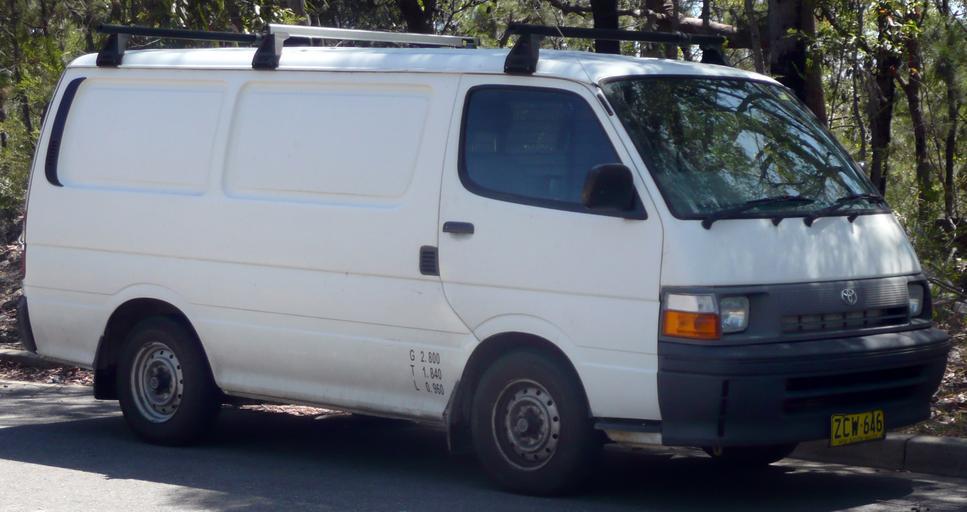 Keywords: 1994-1998 Toyota Hiace (RZH103R) van 01.jpg 1994 “1998 Toyota Hiace RZH103R van photographed in New South Wales Australia Own 2009-01-16 OSX Released into the public domain OSX Toyota HiAce H100 White vans Photographs by OSX