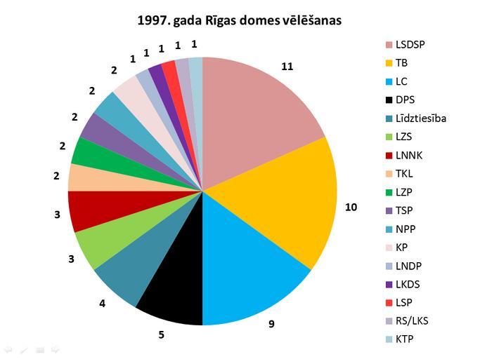 Keywords: 1997 vēlēšanas Rīga.png en Results of 1997 Riga Council elections lv 1997 gada Rīgas domes vēlēšanu rezultāti own SpeedKing SpeedKing <span class signature-talk >talk</span> Elections in Latvia Local government in Riga