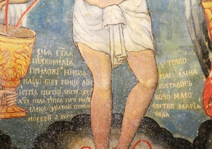 Keywords: Св. Ѓорѓи во Тројаци1.jpg mk Ф еска во ц квата Св Ѓо ѓи во п илепско Т ојаци http //www oldprilep com/wp-content/uploads/2015/06/KUKATA-I-TROJACI-020 jpg year 1850 Unknown PD-Macedonia St George's Church Trojaci
