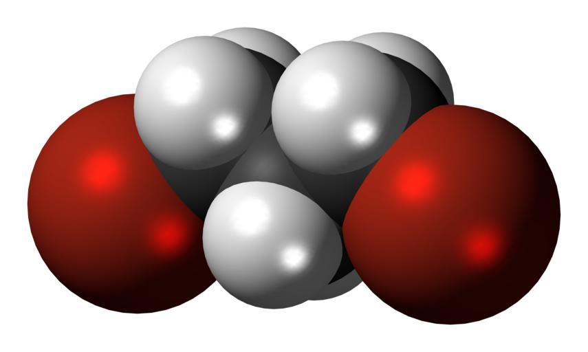 Keywords: 1,3-Dibromopropane-3D-spacefill.png Space-filling model of the 1 3-dibromopropane molecule an organobromide Colour code 505050 Carbon C black<br> F0F0F0 Hydrogen H white<br> B42814 Bromine Br red-brown<br> 2011-02-18 own DS Visualizer Jynto talk Ball-and-stick version cc-zero 1 3-dibromopropane Images by Jynto Space-filling models |