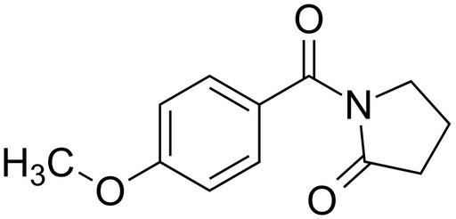 | Keywords: 1-(4-methoxybenzoyl)pyrrolidin-2-one 200.svg  validSVG Structure of 1- 4-methoxybenzoyl pyrrolidin-2-one Own 2014-04-21 Emeldir <span class signature-talk >talk</span> Chemical structure verified https //upload wikimedia org/wikipedia/commons/3/38/1- 284-methoxybenzoyl 29pyrrolidin-2-one_200 svg 1S/C12H13NO3/c1-16-10-6-4-9 5-7-10 12 15 13-8-2-3-11 13 14/h4-7H 2-3 8H2 1H3 ZXNRTKGTQJPIJK-UHFFFAOYSA-N 72432-10-1 Synonyms <small>1- 4-Methoxybenzoyl -2-pyrrolidinone 1- 4-Methoxybenzoyl -2-pyrrolidinone 1- 4-Methoxybenzoyl pyrrolidin-2-one 1- 4-methoxybenzoyl pyrrolidin-2-one 1-p-Anisoyl-2-pyrrolidinone Ampamet Aniracetam aniracetam Aniracetamun BRN 4807205 Draganon Pergamid Reset Ro 13-5057 RO 135057 Ro-13-5057 Sarpol Sarpul</small> PD-chem Aniracetam  |