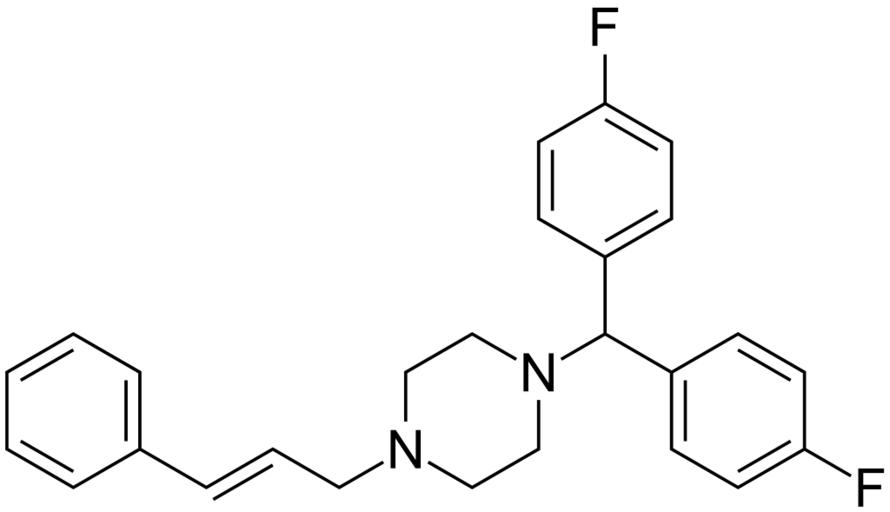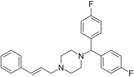 | Keywords: 1-(bis(4-fluorophenyl)methyl)-4-cinnamylpiperazine 200.svg  validSVG Structure of 1- bis 4-fluorophenyl methyl -4-cinnamylpiperazine Own 2014-06-08 Emeldir <span class signature-talk ></span> Chemical structure verified https //upload wikimedia org/wikipedia/commons/1/14/1- 28bis 284-fluorophenyl 29methyl 29-4-cinnamylpiperazine_200 svg 1S/C26H26F2N2/c27-24-12-8-22 9-13-24 26 23-10-14-25 28 15-11-23 30-19-17-29 18-20-30 16-4-7-21-5-2-1-3-6-21/h1-15 26H 16-20H2/b7-4+ SMANXXCATUTDDT-QPJJXVBHSA-N 52468-60-7 Synonyms <small> E -1-bis 4-fluorophenyl methyl-4- 3-phenyl-2-propenyl piperazine E -1-Bis- p-fluorophenyl methyl-4-cinnamylpiperazine 1- Bis 4-fluorophenyl methyl -4-cinnamylpiperazine 1-Bis 4-fluorophenyl methyl-4- 3-phenyl-2-propenyl piperazine 1-Bis- 4-fluoro-phenyl -methyl-4- E -3-phenyl-allyl -piperazine 4' 4-Difluorocinnarizine trans-1-Cinnamyl-4- 4 4'-difluorobenzhydryl piperazine dihydrochloride Flunaritsiinidihydrokloridi Flunarizin-dihydrochlorid Flunarizina Flunarizina hidrocloruro de Flunarizindihydroklorid Flunarizine Flunarizine Hydrochloride Flunarizine dichlorhydrate de Flunarizini Dihydrochloridum Flunarizino dihidrochloridas Flunarizinum R-14950 Sibelium</small> PD-chem Flunarizine |