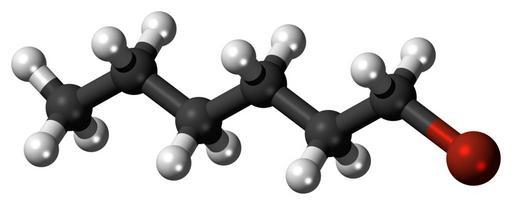Keywords: 1-Bromohexane-3D-balls.png Ball-and-stick model of the 1-bromohexane molecule an haloalkane Colour code 505050 Carbon C black<br> F0F0F0 Hydrogen H white<br> B42814 Bromine Br red-brown<br> 2011-02-19 own DS Visualizer Jynto talk Space-filling version cc-zero 1-bromohexane Images by Jynto Ball-and-stick models |