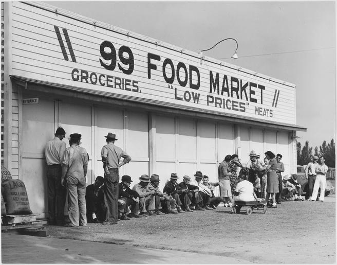 | Keywords: 1 mile S. of Tulare, Tulare County, California. Line up of relief clients, early in the morning, out . . . - NARA - 521808.tif Scope and content Full caption reads as follows 1 mile S of Tulare Tulare County California Line up of relief clients early in the morning outside of food store where Federal distribution of surplus commoditites will be made On this day they will receive sugar oranges apples dry beans Tulare is an agricultural town General notes 521808 Local identifier 83-G-41564 Department of Agriculture Bureau of Agricultural Economics Division of Economic Information ca 1922 - ca 1953 NARA-Author Lange Dorothea 1895-1965 Photographer 1372774 <br /> Still Picture Records Section Special Media Archives Services Division NWCS-S National Archives at College Park 8601 Adelphi Road College Park MD 20740-6001 1940-04-10 Record group Record Group 83 Records of the Bureau of Agricultural Economics 1876 - 1959 Record group ARC 412 Photographic Prints Documenting Programs and Activities of the Bureau of Agricultural Economics and Predecessor Agencies compiled ca 1922 - ca 1947 documenting the period ca 1911 - ca 1947 Series ARC 521048 File unit File unit ARC Variant control numbers NAIL Control Number NWDNS-83-G-41564 yes Other versions <gallery> File 1_mile_S _of_Tulare _Tulare_County _California _Line_up_of_relief_clients _early_in_the_morning _out_ _ _ _-_NARA_-_521808 tif tif File 1_mile_S _of_Tulare _Tulare_County _California _Line_up_of_relief_clients _early_in_the_morning _out_ _ _ _-_NARA_-_521808 jpg jpg </gallery> NARA-cooperation PD-USGov Dorothea Lange History of Tulare County California Grocery stores in California Queues in California NARA TIF images with categorized JPGs Food relief in the United States |
