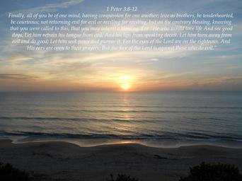 | Keywords: god jesus jesus christ jesuschrist god the father godthefather holy spirit holyspirit holy church scripture angels faith prayer pray hope peace love alive forevermore aliveforevermore angel christian righteous king of kings kingofkings heaven archangel god is love godislove prince of peace princeofpeace creator christ the creator christthecreator god the creator godthecreator third heaven thirdheaven awesome alpha and omega alphaandomega wonderful glorious omnipotent almighty bible holy bible holybible armor of god armorofgod glorify hallelujah judgment judgment day judgmentday usa united states of america unitedstatesofamerica sleep christ who strengthens me christwhostrengthensme word of god wordofgod word of god stands forever wordofgodstandsforever shine like stars shinelikestars the lord is my shepherd thelordismyshepherd eternity confess christ confesschrist confess repent repentance humble sinner humble yourself humbleyourself saved lost found salvation praise god praisegod amen word became flesh wordbecameflesh be strong bestrong courage spiritual warfare spiritualwarfare spiritual warfare seaside ocean shore outdoor water landscape beach sky coast sand sunset sea cloud wave New King James Version (NKJV) Called to Blessing Finally, all of you be of one mind, having compassion for one another; love as brothers, be tenderhearted, be courteous; not returning evil for evil or reviling for reviling, but on the contrary blessing, knowing that you were called to this, that you may inherit a blessing. For “He who would love life And see good days, Let him refrain his tongue from evil, And his lips from speaking deceit. Let him turn away from evil and do good; Let him seek peace and pursue it. For the eyes of the Lord are on the righteous, And His ears are open to their prayers; But the face of the Lord is against those who do evil.” Romans 8:28 New King James Version (NKJV) And we know that all things work together for good to those who love God, to those who are the called according to His purpose. New King James Version (NKJV) Called to Blessing Finally, all of you be of one mind, having compassion for one another; love as brothers, be tenderhearted, be courteous; not returning evil for evil or reviling for reviling, but on the contrary blessing, knowing that you were called to this, that you may inherit a blessing. For “He who would love life And see good days, Let him refrain his tongue from evil, And his lips from speaking deceit. Let him turn away from evil and do good; Let him seek peace and pursue it. For the eyes of the Lord are on the righteous, And His ears are open to their prayers; But the face of the Lord is against those who do evil.” Romans 8:28 New King James Version (NKJV) And we know that all things work together for good to those who love God, to those who are the called according to His purpose. |