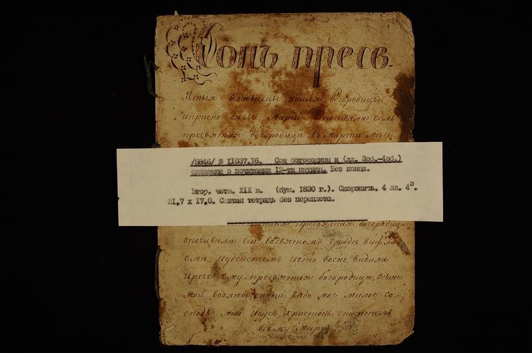 | Keywords: Сон Богородицы 1 sign.JPG ru Сон Бого одицы и сказание о почитании 12-ти пятниц Вто ая четве ть XIX века century 19 http //old stsl ru/manuscripts/mda-prochie/82-16 fnum 2 author Custom license marker 2013 07 01 PD-old-100 Uploaded with UploadWizard Apocrypha in Russian Paraskeva |