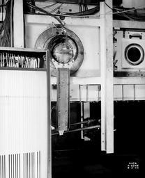 Keywords: blackandwhite monochrome black and white (A-6246): This detail view of the 1 x 3.5-Foot High-Speed Tunnel’s test section shows an airfoil model protruding through the end plate with tubes from pressure taps emerging from its end. Note the vertical channel and adjustment links used to set the angle of attack and a portion of a multi-tube manometer panel at left. (A-6246): This detail view of the 1 x 3.5-Foot High-Speed Tunnel’s test section shows an airfoil model protruding through the end plate with tubes from pressure taps emerging from its end. Note the vertical channel and adjustment links used to set the angle of attack and a portion of a multi-tube manometer panel at left. |