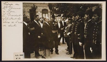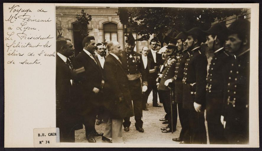 Keywords: photo border text Voyage de M. Poincaré à Lyon. Le président félicitant les élèves de l'école de santé. Voyage de M. Poincaré à Lyon. Le président félicitant les élèves de l'école de santé.