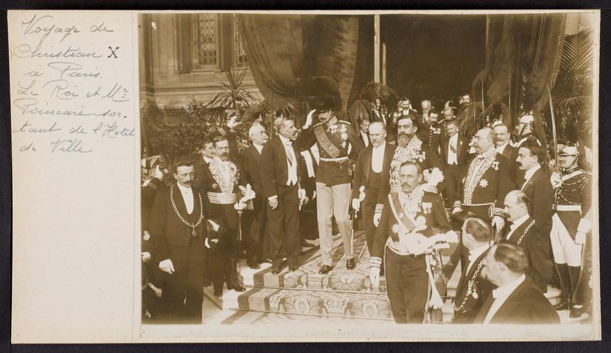 Keywords: photo border text Voyage de Christian X à Paris. Le roi et M. Poincaré sortent de l'hôtel de ville. Voyage de Christian X à Paris. Le roi et M. Poincaré sortent de l'hôtel de ville.